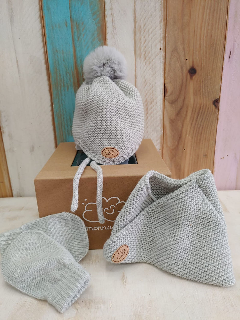 Conjunto Primera Puesta Gorro, Cuello Cruzado y Manoplas 0-3/4 Meses - MONNUAGE